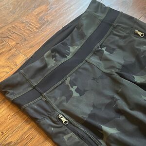 Stylish camouflage pants. Features zippered pockets. Perfect for active wear.