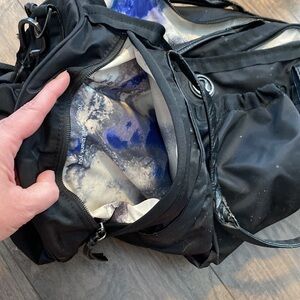 Stock pics show the solid bag- my bag is black and the fabric is perforated with a slight star and dot print