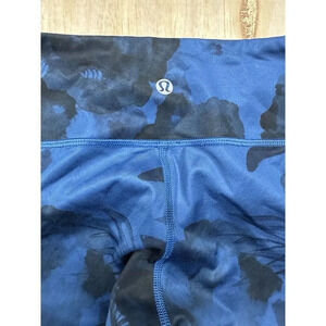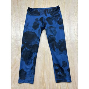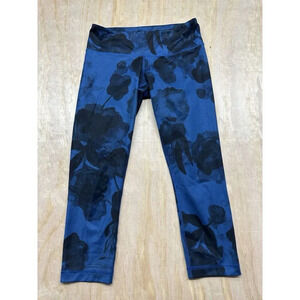 Lululemon Leggings Womens 6 Black Blue Floral Logo Embroidered Wunder Crop