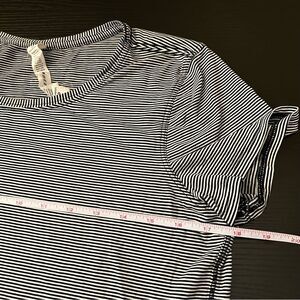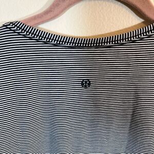 Lululemon women’s black and white striped Love Crew pima cotton shirt.