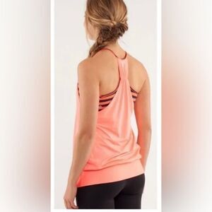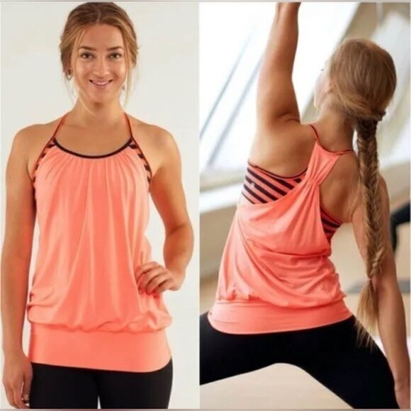 Lululemon No Limits coral/navy stripes attached bra tank top sz 6