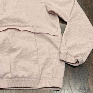 Lululemon Pack Light Pullover Layer Light Pink size 6 GUC packable into build in backpack attached to inside no size tag double check measurements please