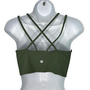 Lululemon Palm Deco Green Like A Cloud Ribbed Longline Light Support Bra