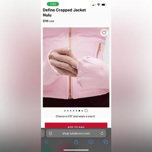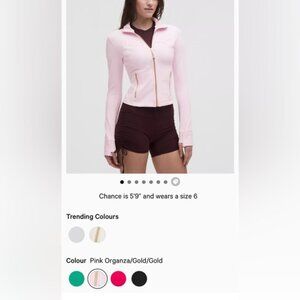 🆕Lululemon🍋Pink Define Cropped Jacket Colour Pink Organza/Gold Sz 0