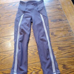 Lululemon Power Lines Crop Cyber/Dark Chrome Sz 2 in good used condition with minimal wear.