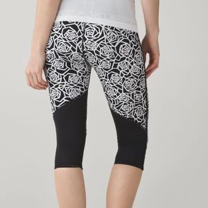 Lululemon Real Quick Crop Posie Black White Floral Size 6 Luxtreme Pockets