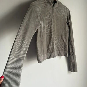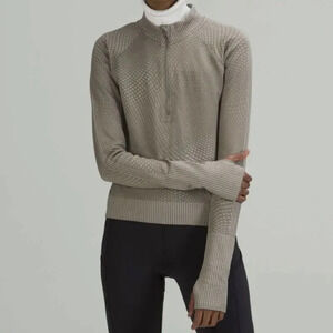 Lululemon Rest Less Cropped Half Zip Top Grid Warp Rover Raw Linen
