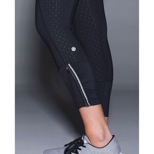 Lululemon Runday 7/8 Tri Geo Embossed Leggings Black Zippers Workout 2
