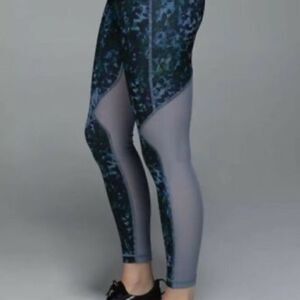 Lululemon Running In The City Mesh Panel Legging Blue Green Floral
