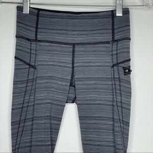 Gray Striped Crop Legging Pants w/ Side Zipper & Ruching