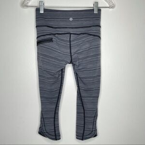 Lululemon Running Top Speed Crop Cyber Stripe Deep Coal Black