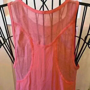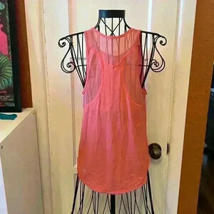This lightweight tank has mesh fabric panels for breathability in sweaty situations. In a really pretty coral color.