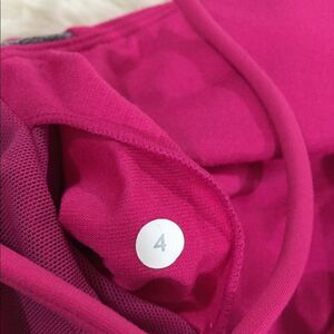 Super cute pre-owned Lululemon Tadasana hot pink spaghetti strap tank top with grey accents, size 4. Rip tag has been cut out but it has the size dot on the inside. Built in bra, no pads included but you could add your own. No stains or pulls in fabric. Please ask all questions before purchasing.