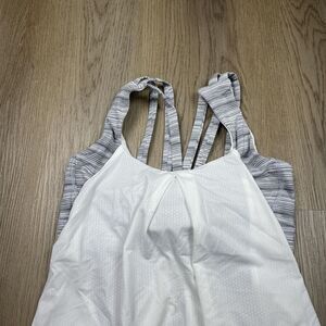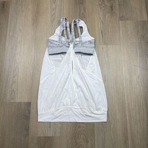 Lululemon Tank Top Womens 4 White Striped Built In Bra Racerback Yoga Athletic