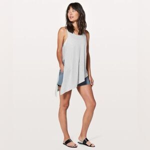 Lululemon To The Point Tank in longer length NWOT 4 IN lavender. Assymetrical hem with side slit. Materials