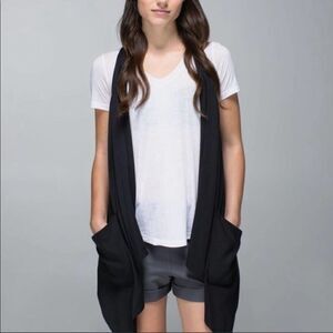 A little heat is nice but too much can be downright uncomfortable. We designed this silky-soft, sleeveless wrap to be an easy post-practice layer when we want to cool down without catching a chill. And bonus - we can wear it three different ways depending on how much heat we want to hold on to. Long in front, behind your head like a vest or looped for a cowl neck Loose fit makes for easy layering over a tank and tights