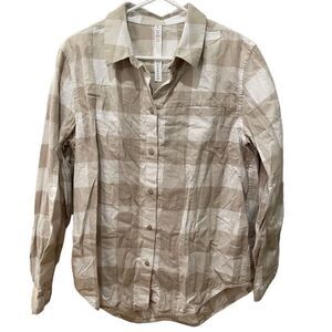 Lululemon Tunic Womens 10 Full Day Ahead Top Tan Flannel Button Up Long Sleeve