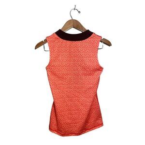 Lululemon V-Neck Tank Top Womens Size Print Orange Brown Trim.