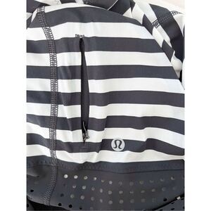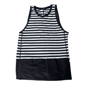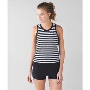 Lululemon Vent It tank top striped black and white. Approximately 25” long and 16.5” armpit to armpit. Style W2C92S. Excellent condition, no size tag, measures to a 6.
