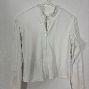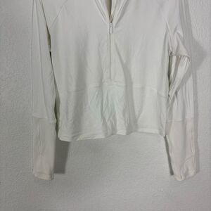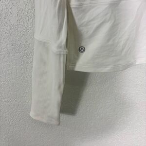 Great pre-owned condition Lululemon White Half Zip Ribbed Sleeve Semi Cropped Workout Long Sleeve Top
