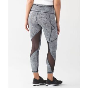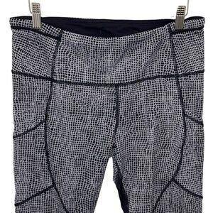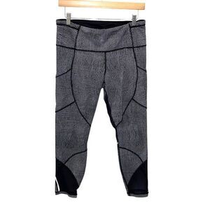 Lululemon Womens Abstract Grid Mesh Outrun Cropped Leggings Black White Size 10