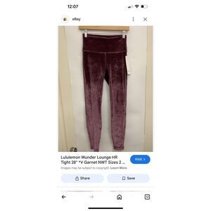 Lululemon Wunder Lounge Special Edition Plum Velvet Leggings sz 4 EUC