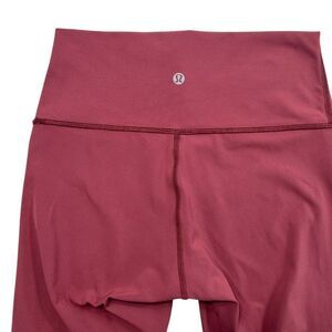 These Lululemon leggings offer a functional and stylish option for athletic wear. With a high-waisted design, they provide comfort and support during workouts. The burgundy color and durable fabric add a touch of elegance, making them suitable for both exercise and casual wear.