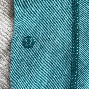 Lululemon Wunder under green stripe leggings with 32 inch inseam. The Tearaway tag is missing but the size that identifies them as size 4. 9 inch rise and 12 inches straight across the waist when laying flat. Obviously they have a fair amount of stretch.