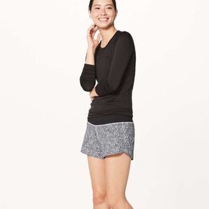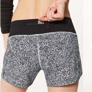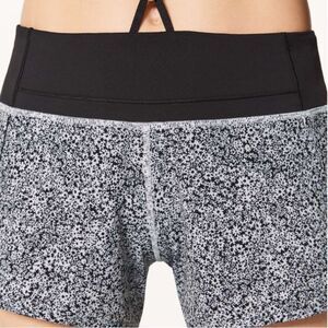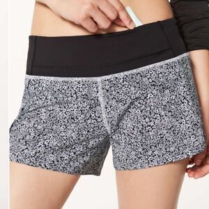 EUC Lululemon black ditsy daisy shorts short lined run times 8