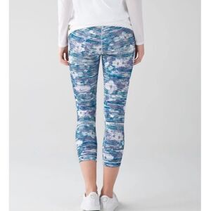 Lululemon blue and white striped True Self Cropped Blurry Belle Multi leggings
