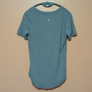 Lululemon classic v-neck stripe grey tshirt sz 4 (estimated)