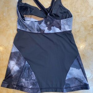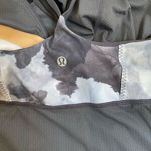 Lululemon dark gray workout tank in size 10. Gray cloud pattern detail. Loose and in great condition
