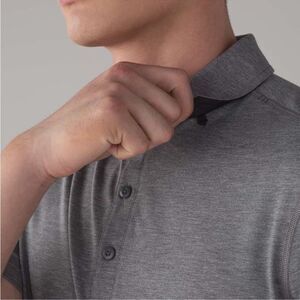 Lululemon men’s Evolution Polo collared short sleeve reflective gray shirt Med