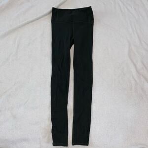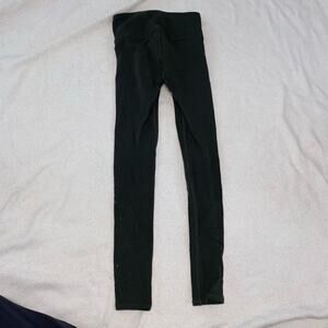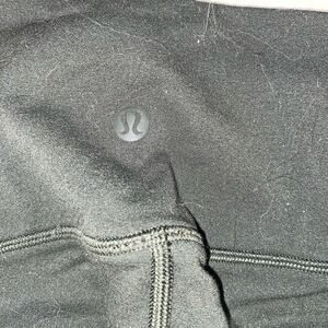 These Lululemon leggings are in good used condition, with visible pilling and general signs of wear. Despite these signs, they maintain their style and comfort, perfect for both workout sessions or casual athleisure looks.