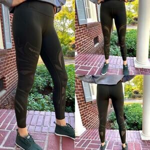 Lululemon Olive Green Laser Cut Floral Leggings | Sz 4