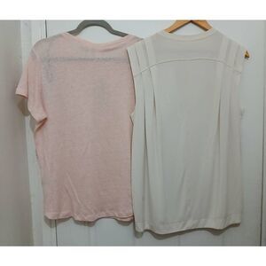 Lululemon women size 6 cream top H&M natural linen shirt pink large lot of two