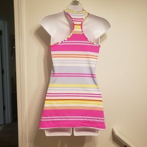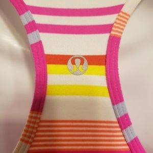 GUC size S(tags removed but fits as a small) Lululemon workout tank. Bright striped razorback. Minor spots shown.