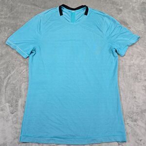 Lululmeon Men's Blue lightweight T-Shirt Size M Has a small hole and pull on fabrics, refer to pictures for condition.