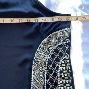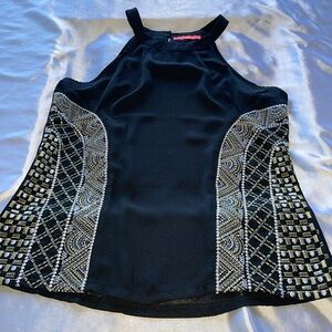 Lulumari Black Silky Halter Top Metallic Thread Embroidered Accent Panels Sz S