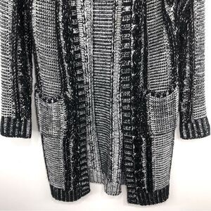 Lulumari Black White Open Front Thick Knit Cardigan Sweater Coat