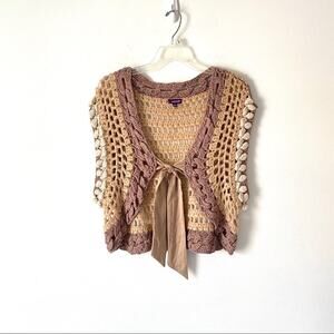 Lulumari Boho Crochet Tie Front Sweater M/L