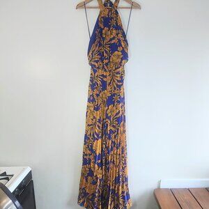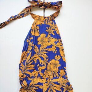 Lulumari Floral Wide Leg Halter Jumpsuit Pleated Boho Mod HipHop Women's Medium