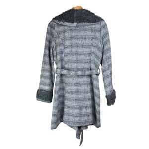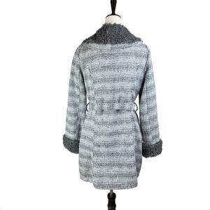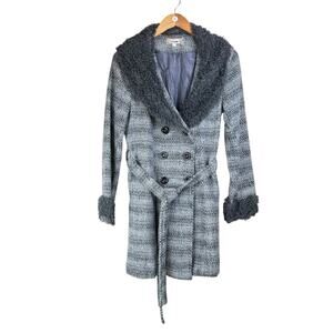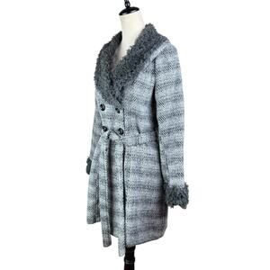 Lulumari Gray Felt Chevron Faux Sheep Fur Collar Button Front Belted Peacoat