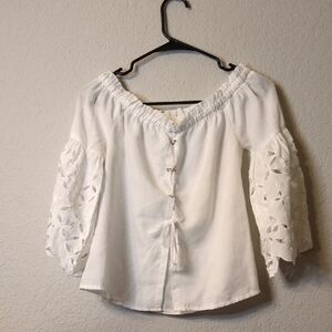 Lulumari Off-the-Shoulder Boho White Top- Size Small