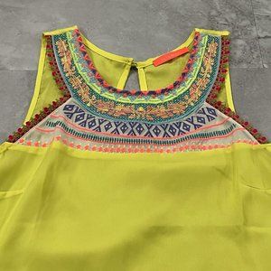 Lulumari Women's Yellow Embroidered Sleeveless Tank Top Size Large L
