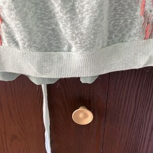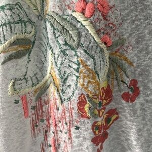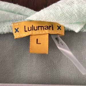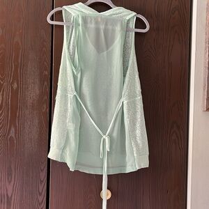 Lulumari sage green embroidered sleeveless top. Size large. Sheer in the back with a tie waist. Small snag in back at the botttom. V neck.