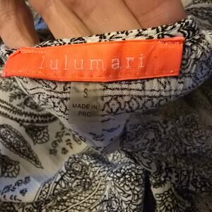 This Lulumari swimsuit coverup is perfect for your next beach vacation! It features a flattering tie front and a stylish high-low hemline. Lightweight and comfortable, it's the perfect addition to your swimwear collection. Get ready to turn heads with this stylish coverup!