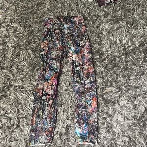 Adjustable waist strap on the inside and pockets on each side great for work outs never worn