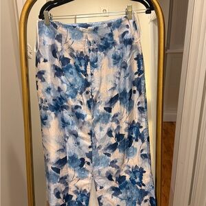 Elegant floral maxi skirt in a beautiful blue pattern. Perfect for any occasion. Lulu’s sweet wonder white and blue floral slip midi skirt