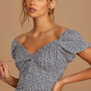 Reason to be dusty blue floral print off the shoulder mini dress